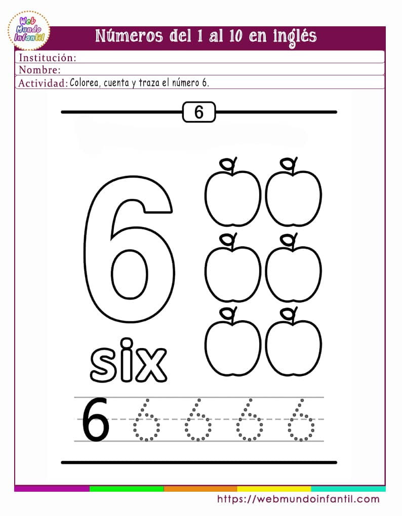 En las siguientes fichas encontrarás ejercicios para trabajar los números del 1 al 10 en inglés donde el niño tendrá que colorear. contar y trazar cada número. Al final del artículo puedes descargar gratis en pdf para imprimir.
