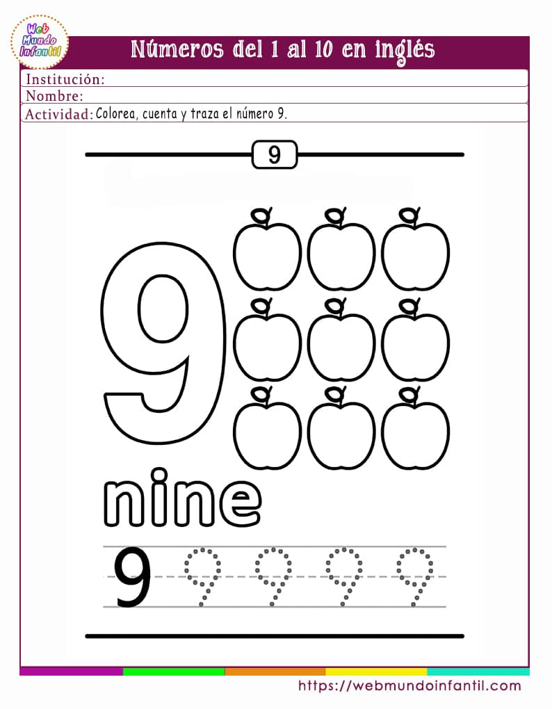 ¿Quieres aprender a contar del 1 al 10 en inglés? Es muy fácil. Sólo necesitas memorizar los números y practicar un poco con las siguientes imágenes. ¡Empecemos! En esta sección, vamos a aprender los números del 1 al 10 en inglés con actividades para niños. Los números en inglés son muy importantes, ya que son usados todos los días, por lo tanto es muy útil que los niños los aprendan desde pequeños.