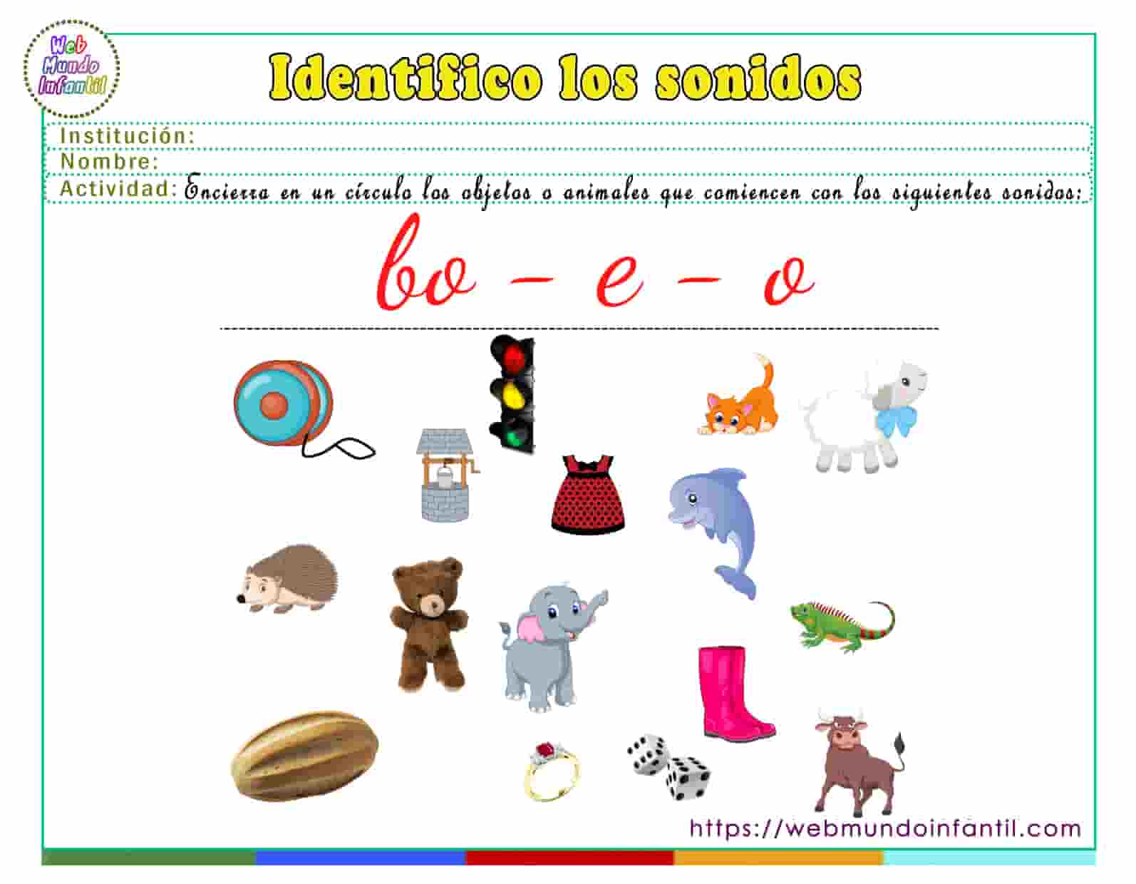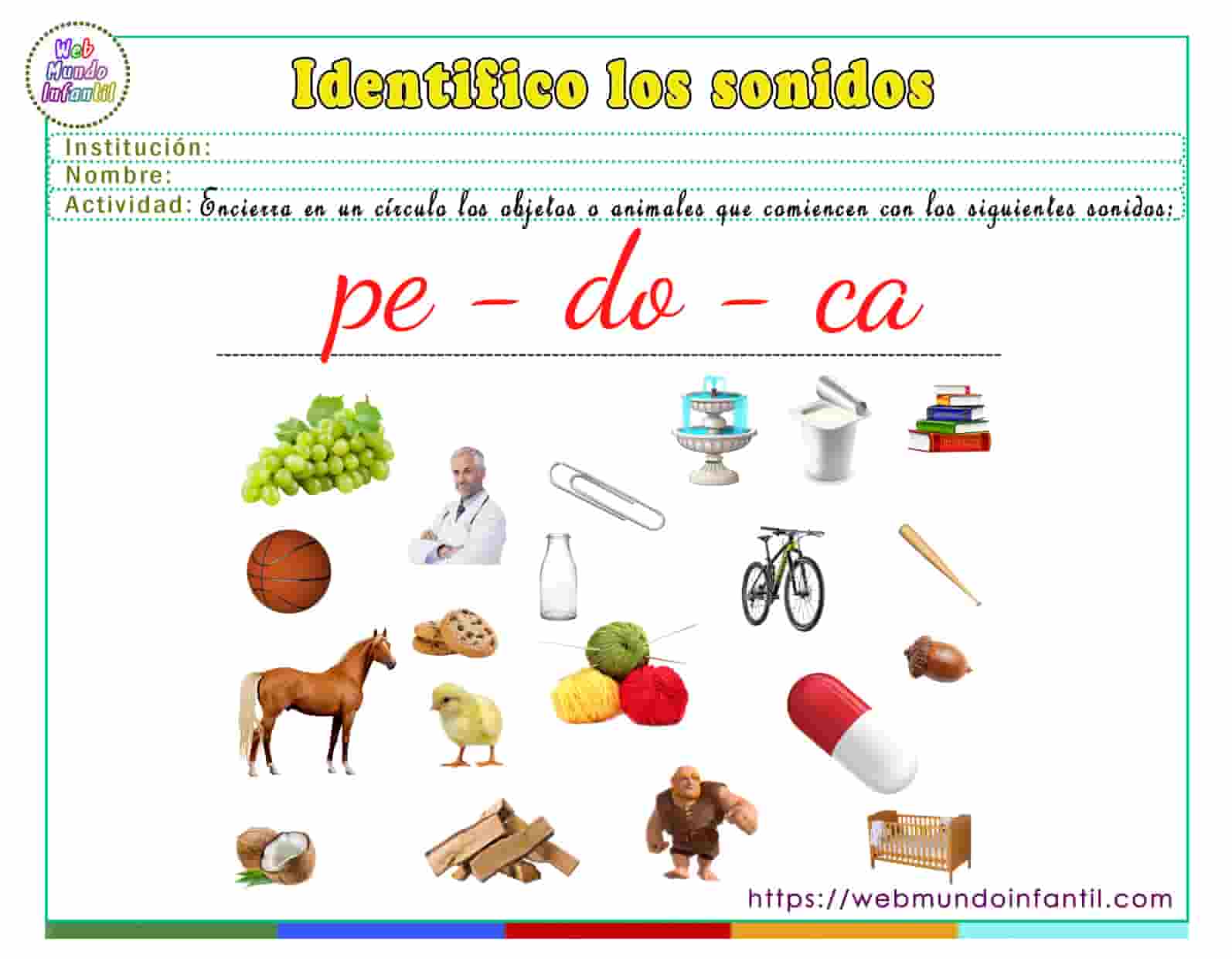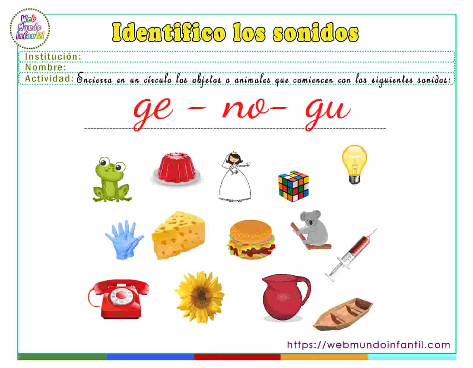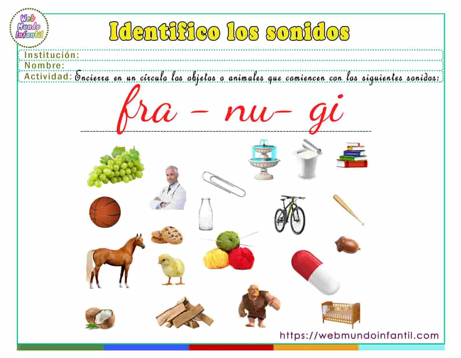 A continuación, puedes obtener las siguientes fichas donde el niño aprenderá a identificar sonidos con las siguientes sílabas: