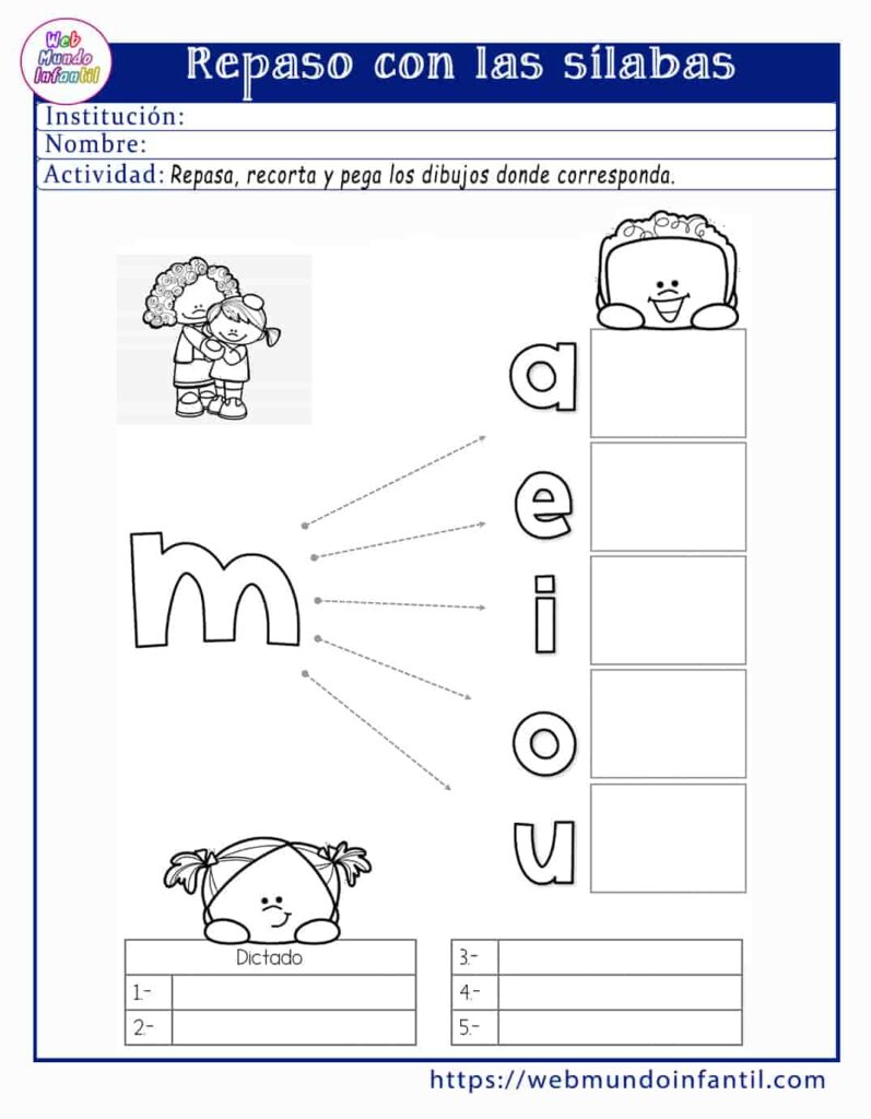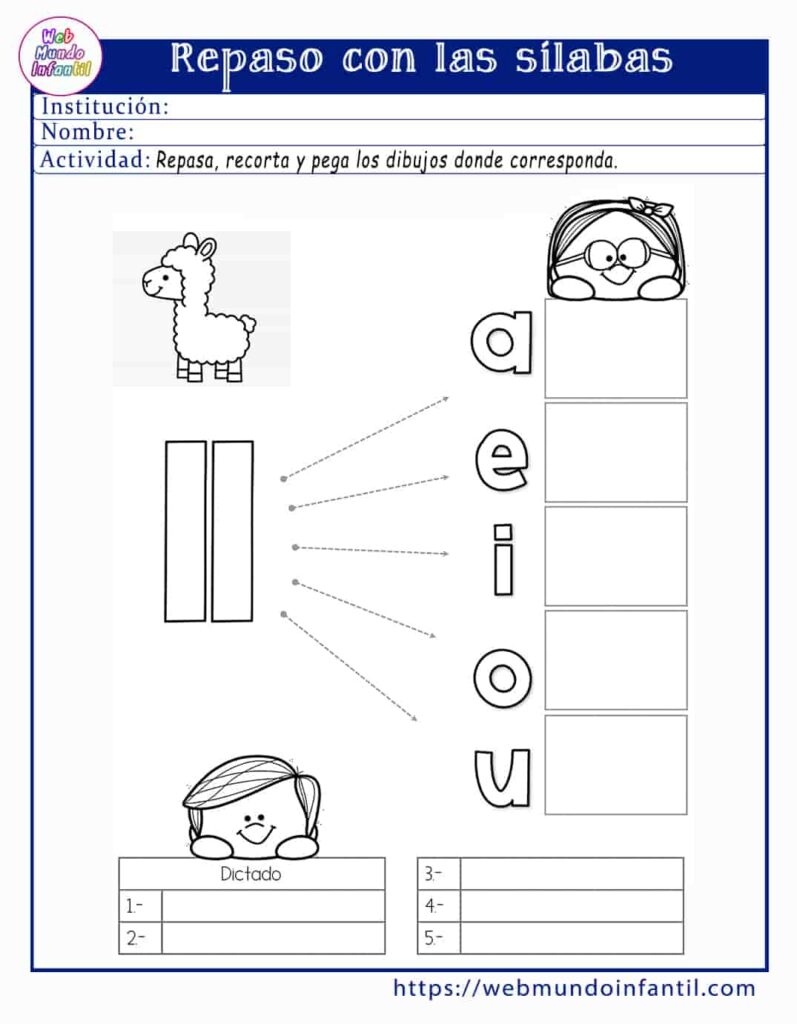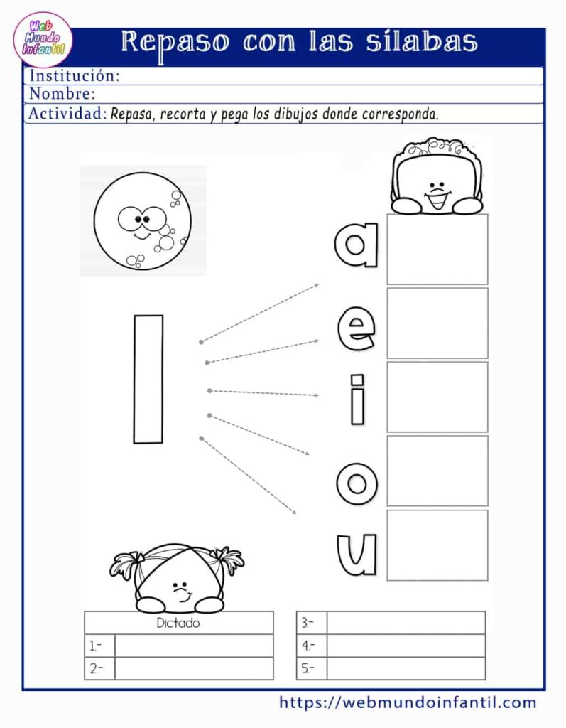 Seguidamente descarga para imprimir en pdf, ejercicios de sílabas para trabajar con los niños.