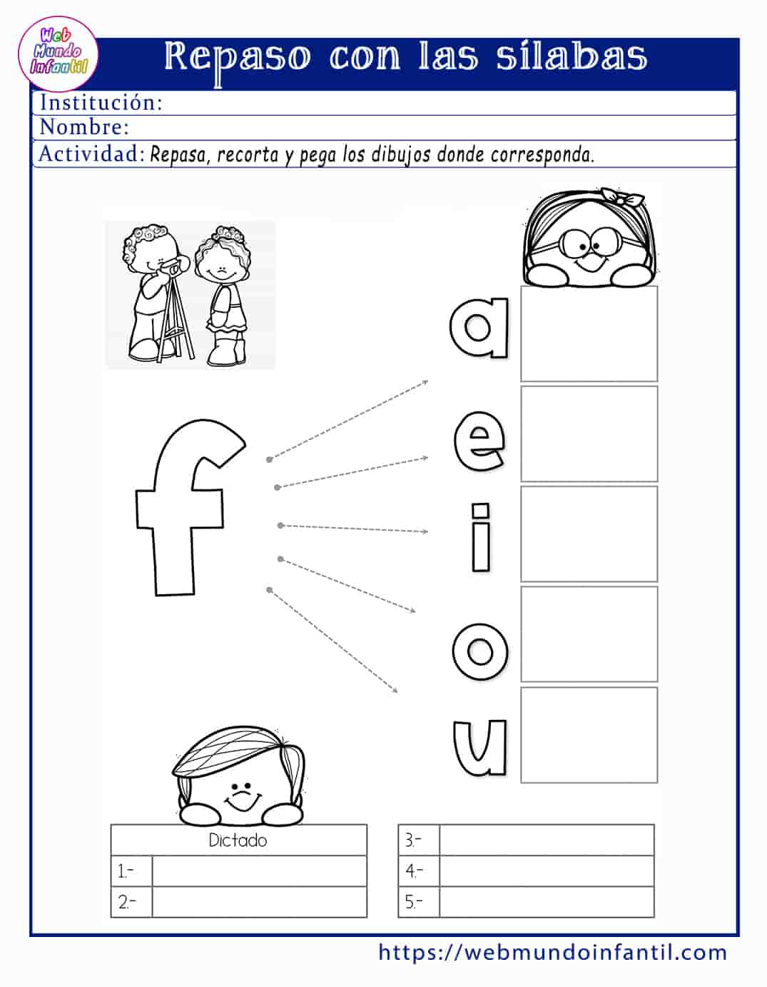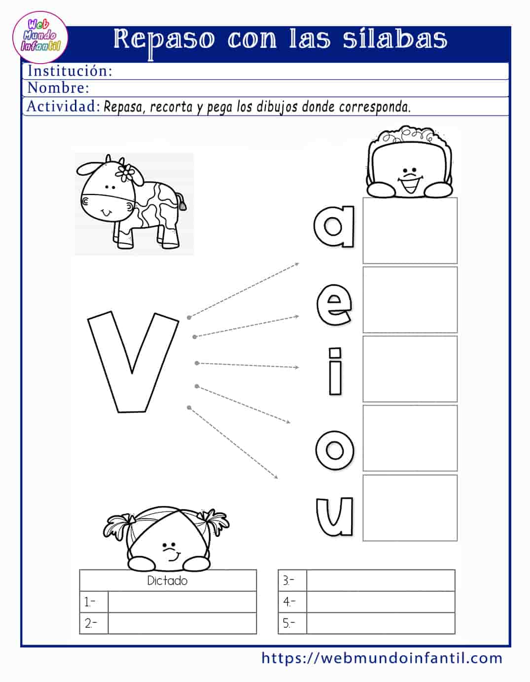 Seguidamente descarga para imprimir en pdf, ejercicios de sílabas para trabajar con los niños.